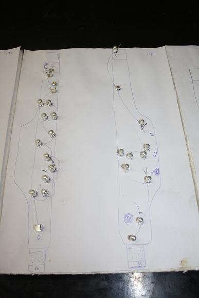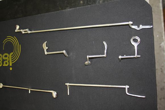 Durante o processo todas as molas e postes são guardadas num suporte. Cada uma delas precisa ser remontada no mesmo lugar.
