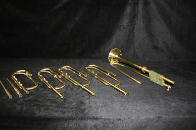 Trompete Barroco A. Egger - Basel. Com dois Leadpipes e quatro voltas em Dó e Dóbemol, Ré e Rébemol.