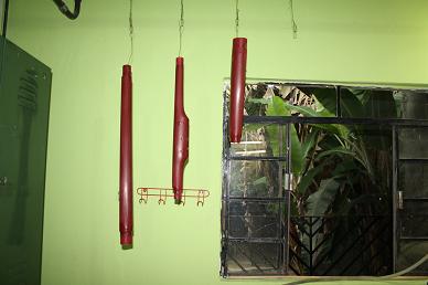 Como distanciador serve um pedaço de madeira que fica por baixo da corda.